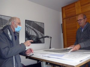 Sur sa grande table d’architecte, un carton noir et blanc, moucheté… Une vingtaine de feuilles (blanches), format raisin.