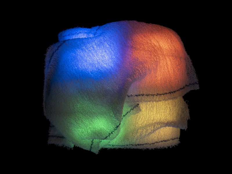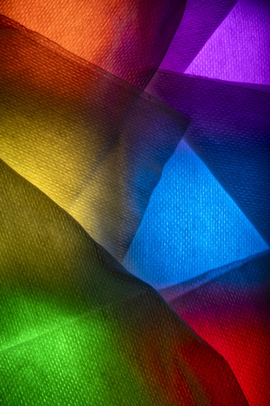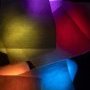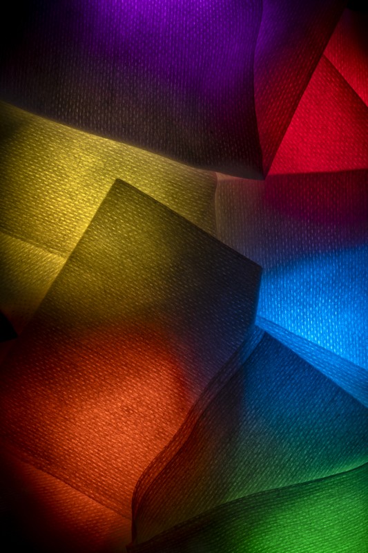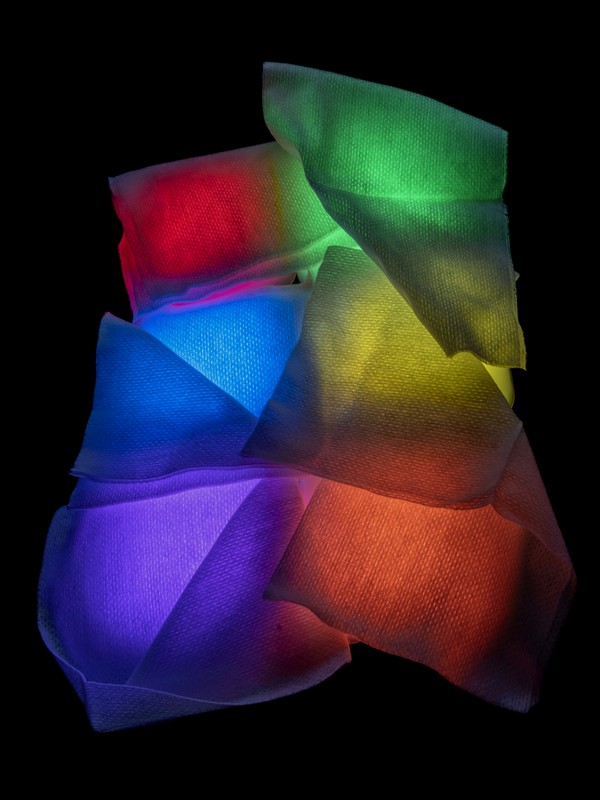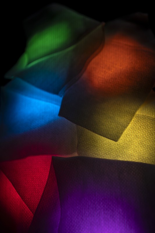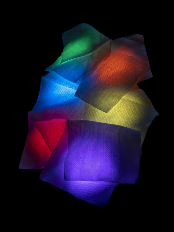 Ce travail d’atelier est relativement simple, minimaliste (comme j’aime), j’ai employé de petits projecteurs dont on peut règler la couleur sur lesquels j’ai posé des trames translucides.